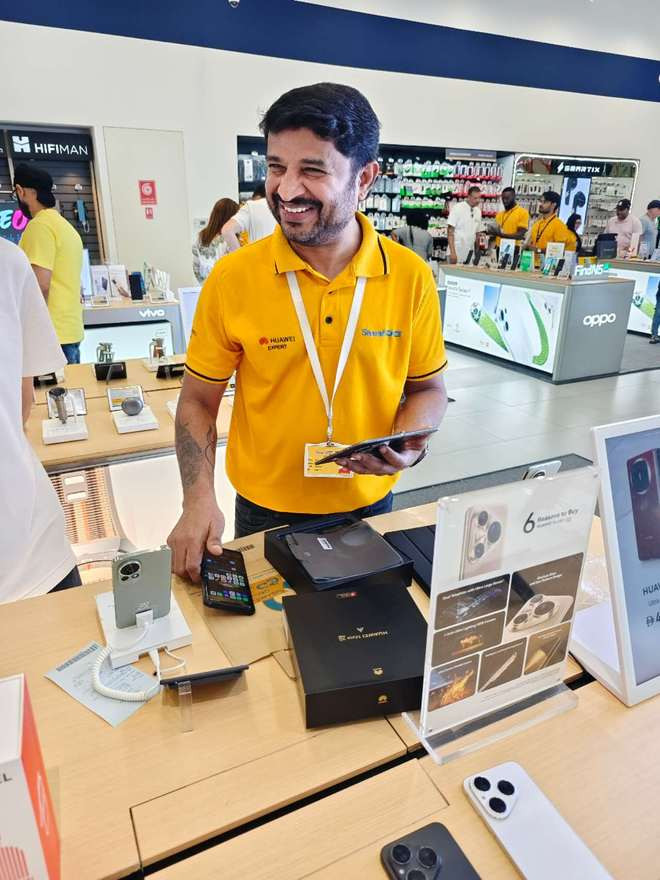 在零售商SharafDG,观察者网恰好遇到了要去非洲工作的两名中国用户。他们在现场购买了一台华为MateX6,并表示迪拜售价要比国内便宜,更重要的是国内的华为手机使用的是鸿蒙系统,无法安装谷歌应用,而海外版使用的还是EMUI,可以“曲线”安装谷歌软件。